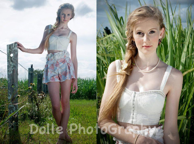 Our second model had a completely different vibe to her, she was a little more delicate a little more shy, therefore I decided to put her into more romantic and vintage clothes. I love this outfit! I got the top from my best friend for my birthday, and I wore it out that night to dinner with a pretty high waisted skirt :) you can't see properly but it has a lovely pearl detailing at the top. These shorts are also from the same shop (forever new, my weakness!) and the 'belt' was originally bought as a necklace about a year ago now :P, I put the same shoes on her as I did with the previous outfit, how clever?! :) Our hair stylist never showed up to the shoot, without any notice and we couldn't even reach her mobile so I had to make do with what we had. By that meaning, we had no combs or bobby pins, and we didn't think we had any hair ties. So, with my trusty YouTube knowledge I did a side braid which actually started from the other side of her head all the way down :) I wear this hairstyle heaps actually, it's my go to when I woke up way too late or I just want to give my hair a break from any heat styling. The pearls I paired with this outfit were a birthday present I got from my mum this year, aren't they sweet? I already had a pearl necklace, but a girl can never have enough pearls...or gold, or diamonds for that matter ;)